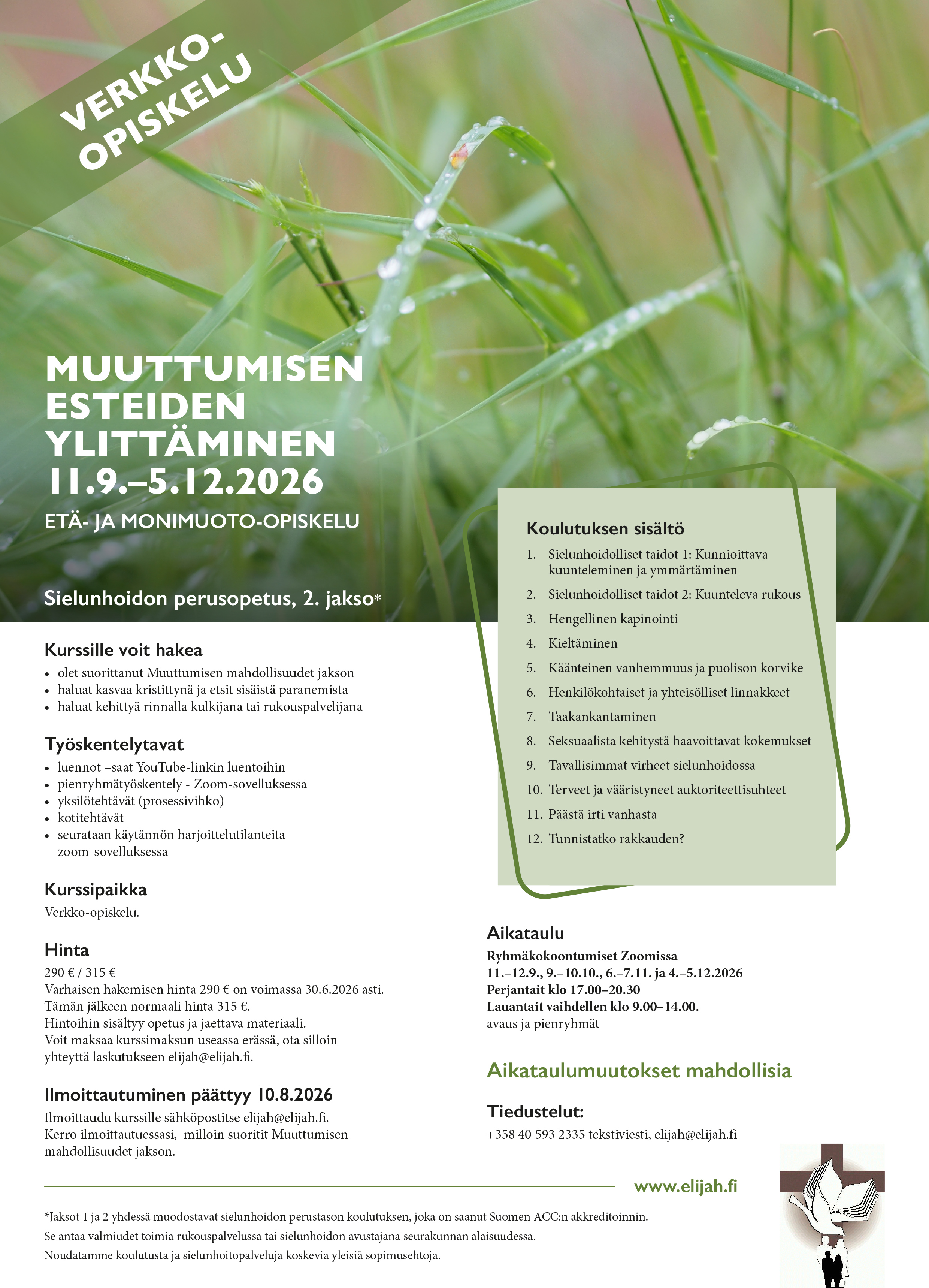 Ilmoittaudu kurssille sähköpostitse elijah@elijah.fi.